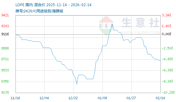 2月11日生意社EVA基准价为10150.00元/吨
