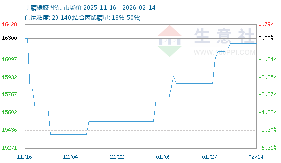 2月13日生意社丁腈橡胶基准价为16250.00元/吨